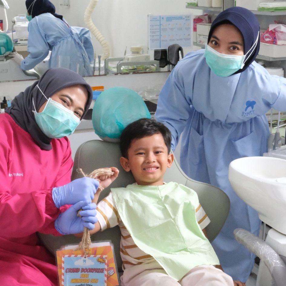 Membangun kebiasaan sehat dimulai sejak usia 6 bulan. Layanan Gigi Anak di Syaify Dental dirancang khusus dengan pendekatan psikologis yang ramah, sabar, dan komunikatif (metode Tell-Show-Do). Kami menciptakan suasana yang fun dan bebas trauma, sehingga anak tidak takut ke dokter gigi. Mulai dari pencegahan hingga perawatan kompleks, kami menjaga kesehatan gigi susu sebagai fondasi penting bagi pertumbuhan gigi permanen mereka