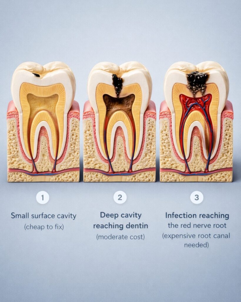 Untuk membantu Anda menyiapkan budget, berikut adalah 3 skenario tingkat keparahan karies dan estimasi penanganannya: